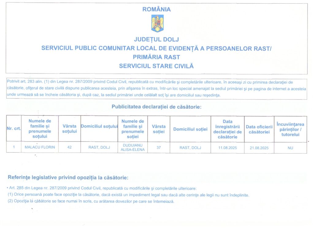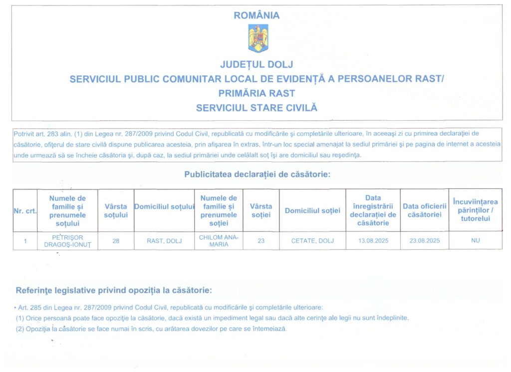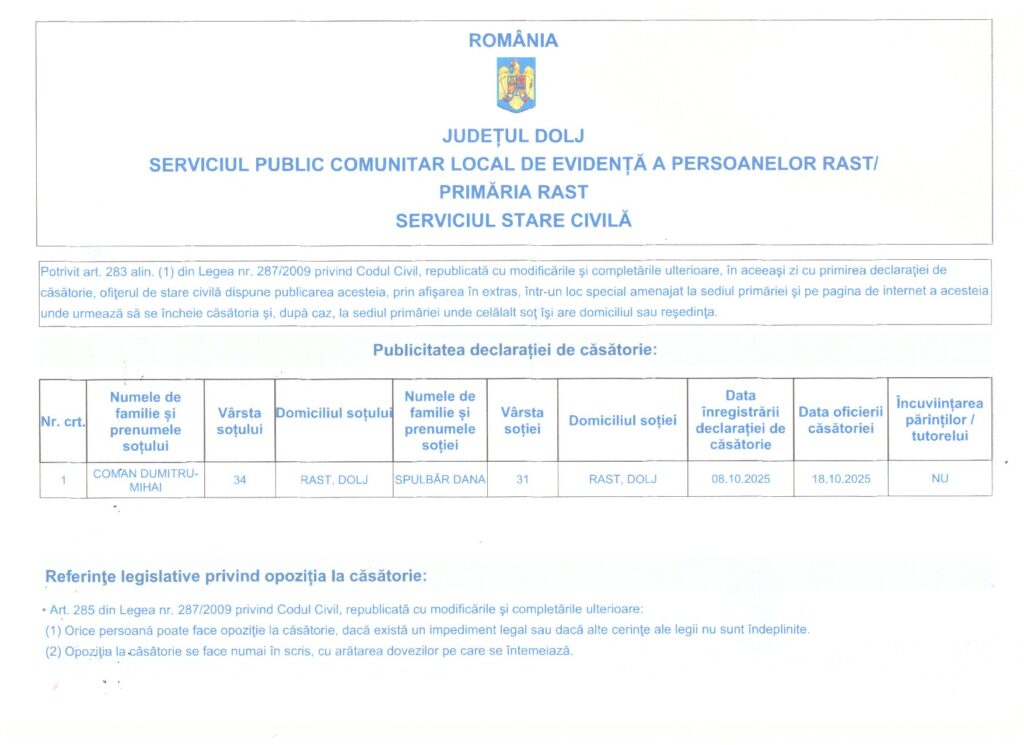 PUBLICATII CASATORIE 2021